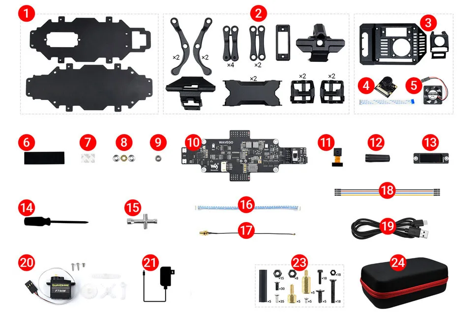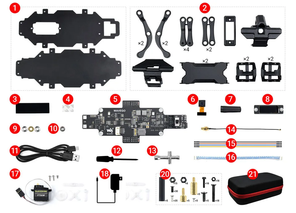 * La cámara de 5MP solo está incluida en WAVEGO EX y PI4 KIT.Control remoto vía webPunto DE ACCESO WiFi generado automáticamente al iniciar, no necesita Configuración de entorno de compilación,